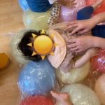 圧縮袋にたくさんの風船🎈割れそうでドキドキですが、圧縮袋の中に