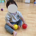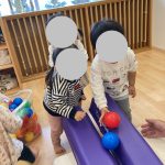 平均台を二つ並べて坂道を作るとボールがコロコロ落ちて楽しい~☺